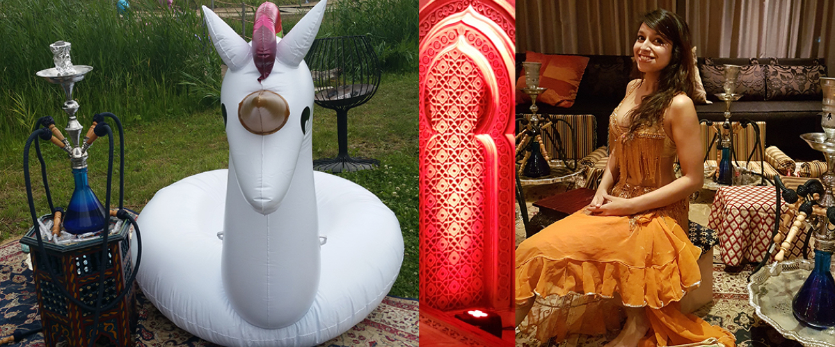 “1001 Nacht-feest”: waterpijpen en oriëntaalse lounge aankleding, of een Indiaas theeterras.